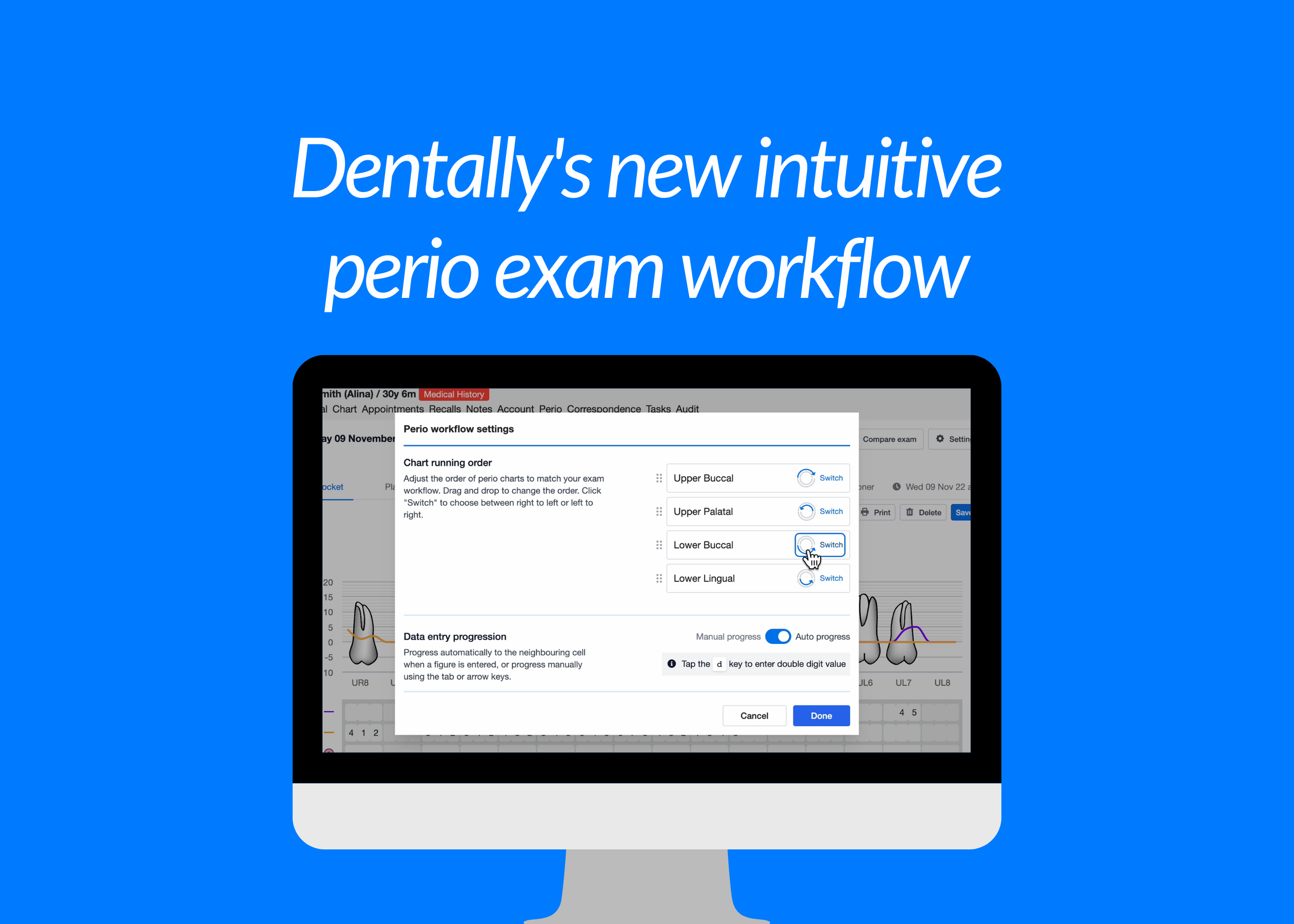 Ease of use has always been and will continue to be at the heart of Dentally’s ethos - that is why we are continuously striving to make your life as a team member of a busy dental practice more efficient. Dentally puts our customers first to minimise the burden of time-consuming daily admin tasks - giving you more time for all-important patient care.